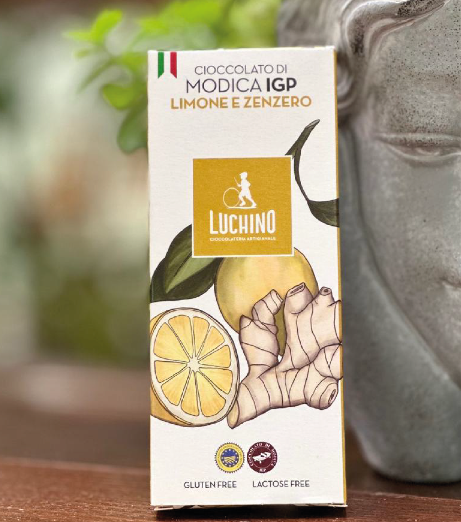 Il Cioccolato di Modica Limone e Zenzero è un prodotto artigianale tipico della Città di Modica con marchio IGP. Freschezza agrumata e calore speziato. Gusto dinamico e texture granulosa unica, lavorata a freddo.