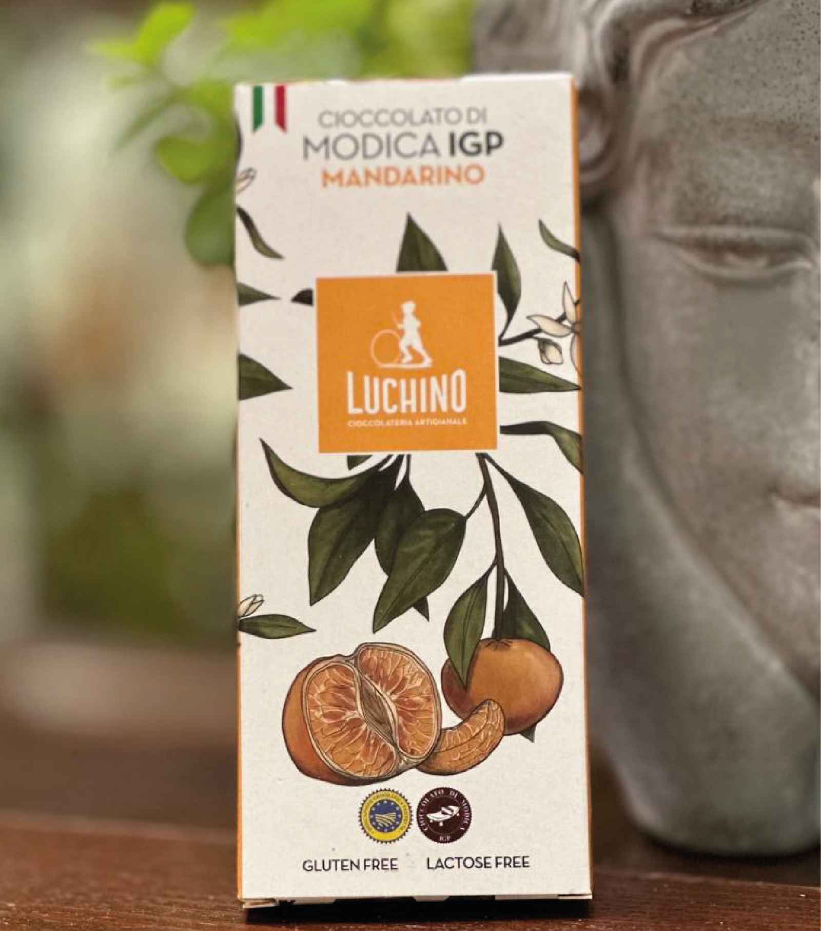 Il Cioccolato di Modica al Mandarino è un prodotto artigianale tipico della Città di Modica con marchio IGP. Cacao lavorato a freddo e aroma intenso di mandarino di Sicilia. Gusto dolce, agrumato e texture granulosa unica.